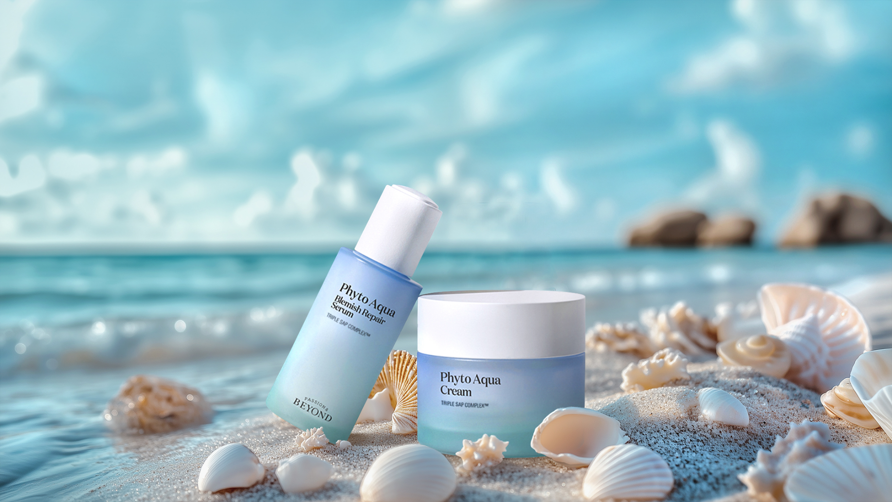 클린뷰티를 지향하는 브랜드 컨셉과 메마르지 않는 수분력을 가진 아쿠아 제품라인을 여름시즌에 맞추어 몰디브 해변으로 연출