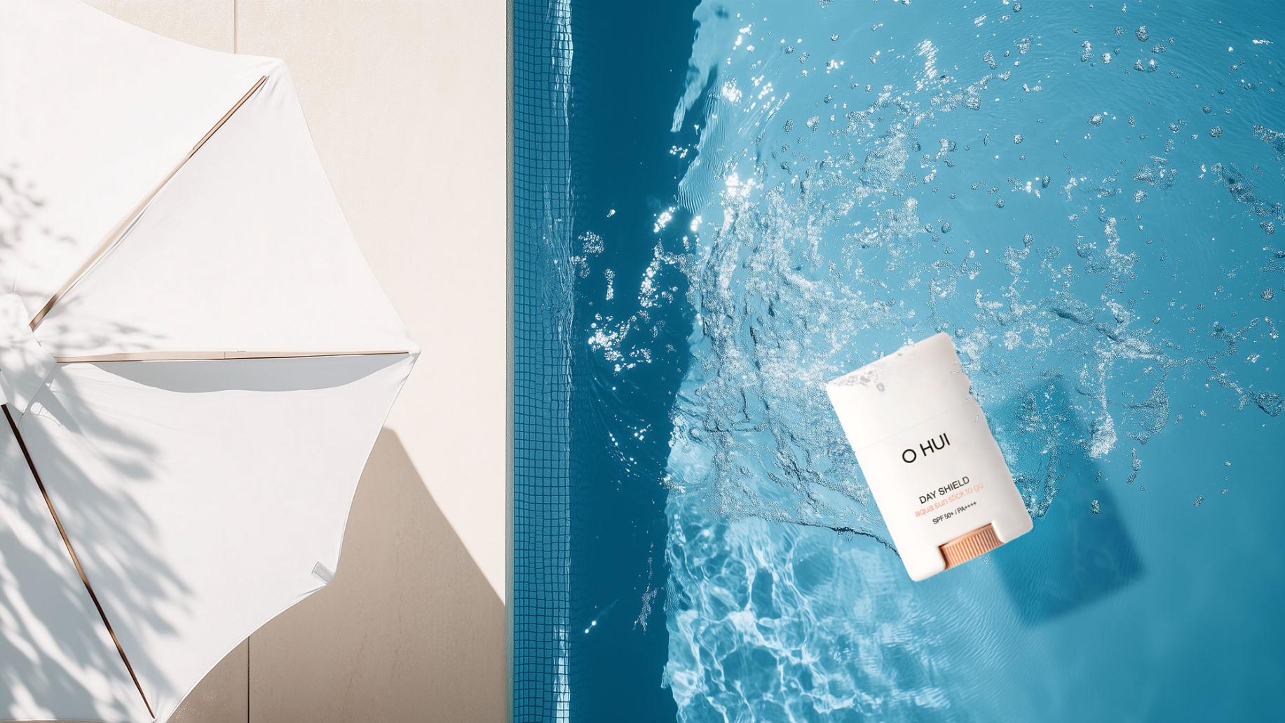 청량감 가득한 수분 쿨링과 자외선 차단 기능성 제품의 여름휴가 시즌을 위한 연출