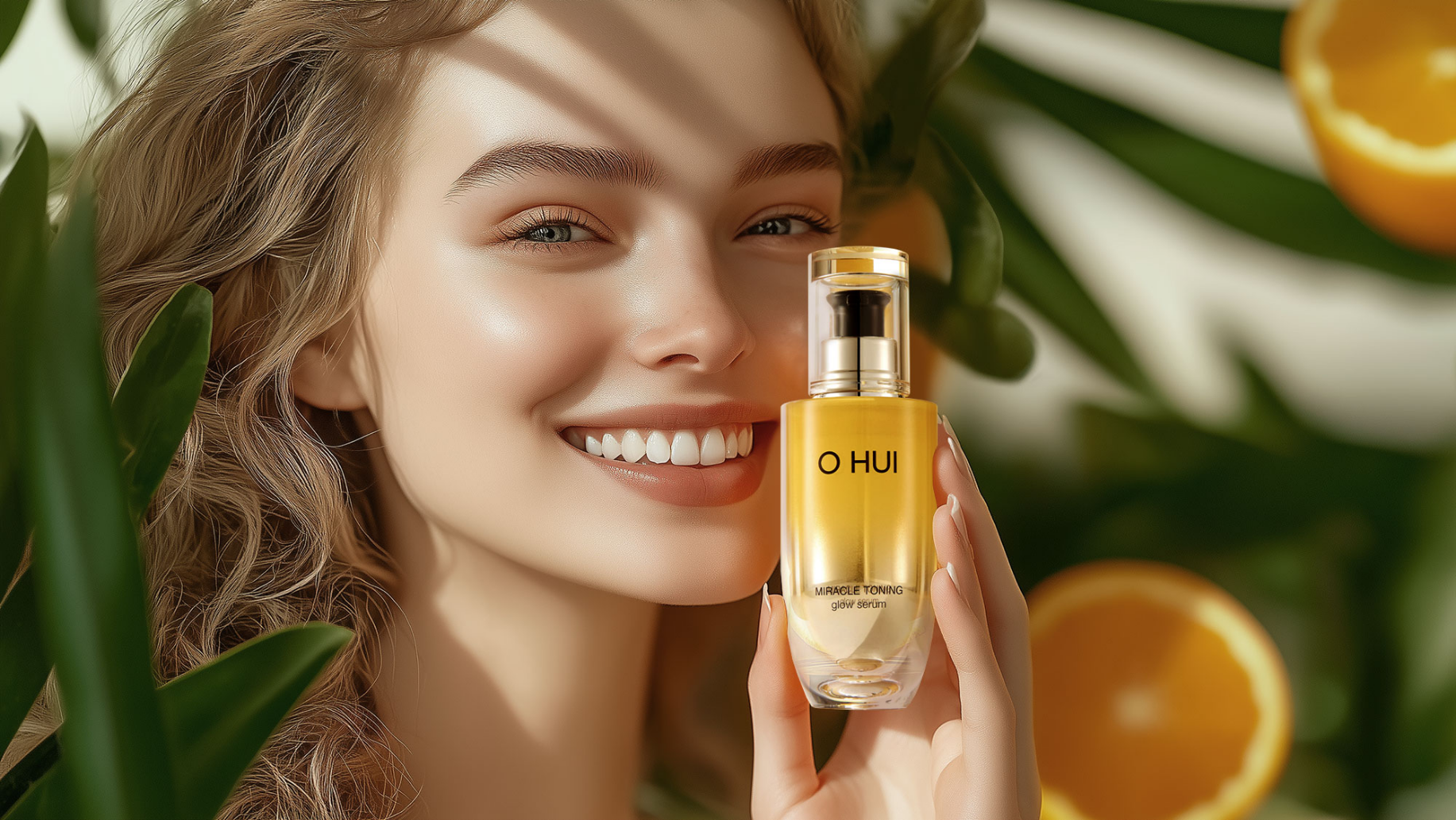 피부에 화사한 생기를 살려주고 덧바를수록 투명하게 차오르는 제품을 위한 20대 여성의 생기 있는 연출