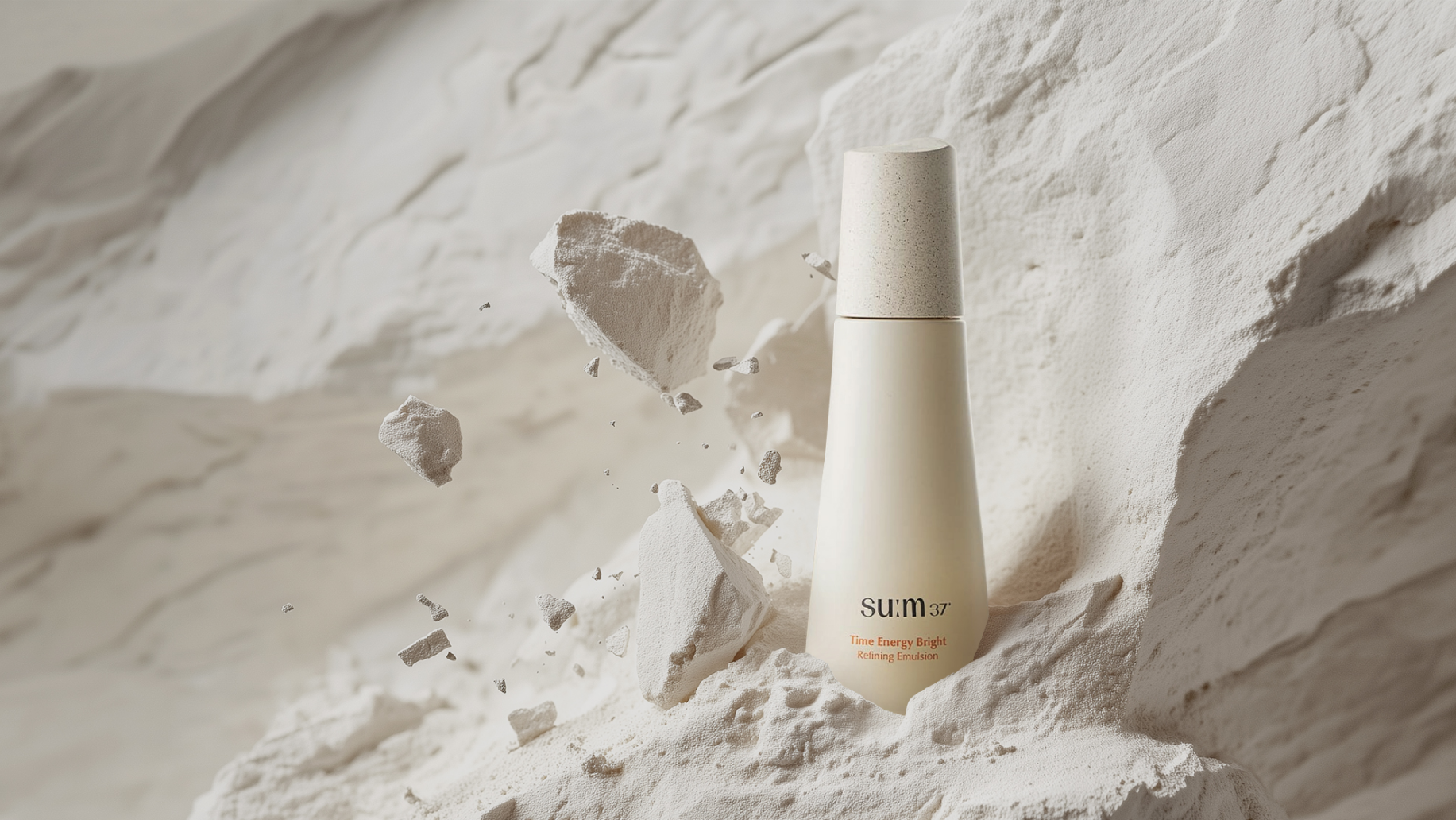 건조하고 모공이 보이는 피부를 모티브로 한 컨셉 공간에 주름개선과 미백 기능이 있는 파운데이션과 쿠션을 연출