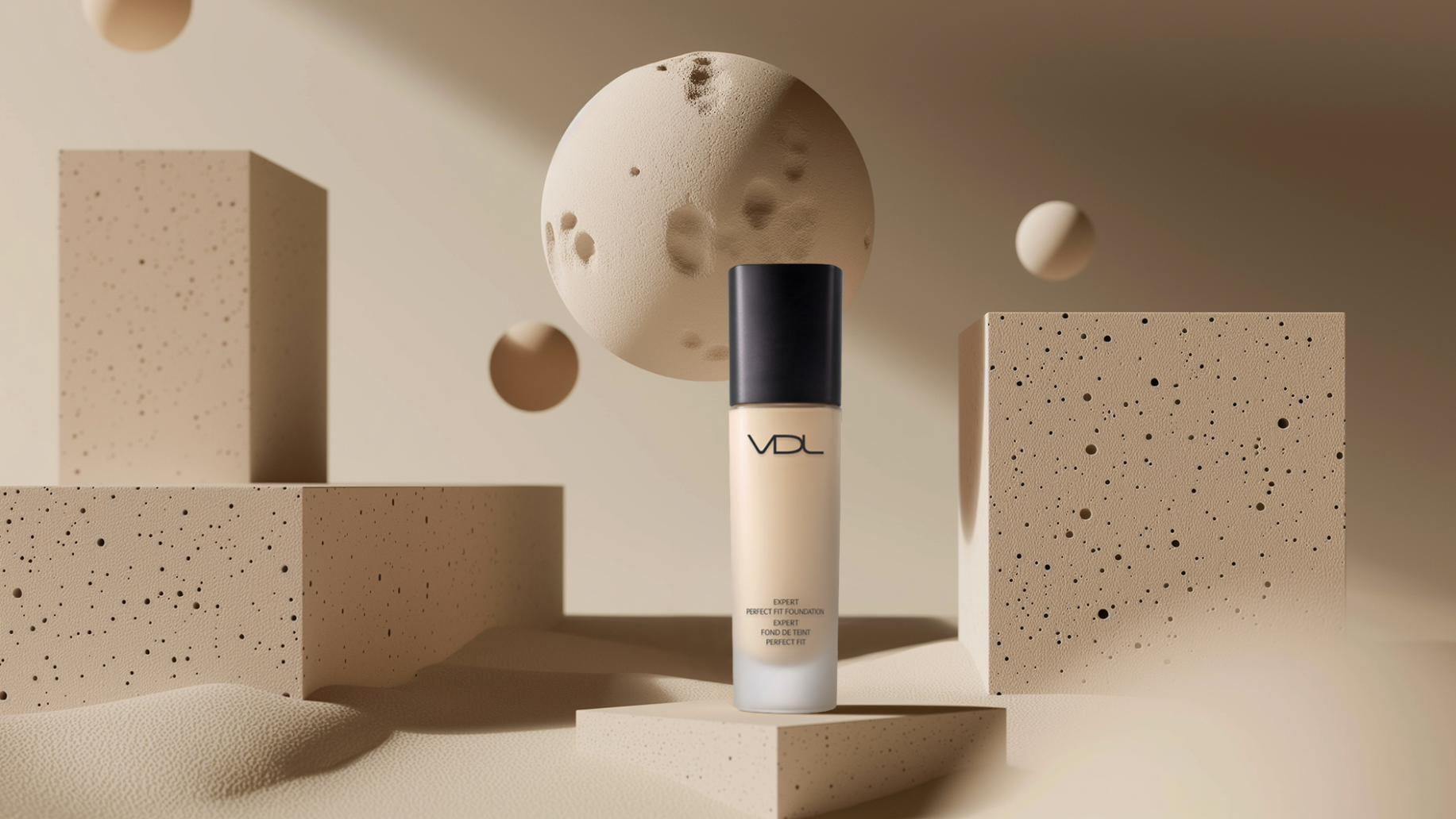 건조한 사막과 피부 모공을 모티브로 한 컨셉 공간에 자외선 차단과 건조함을 보완해 주는 핏 파운데이션 제품을 연출