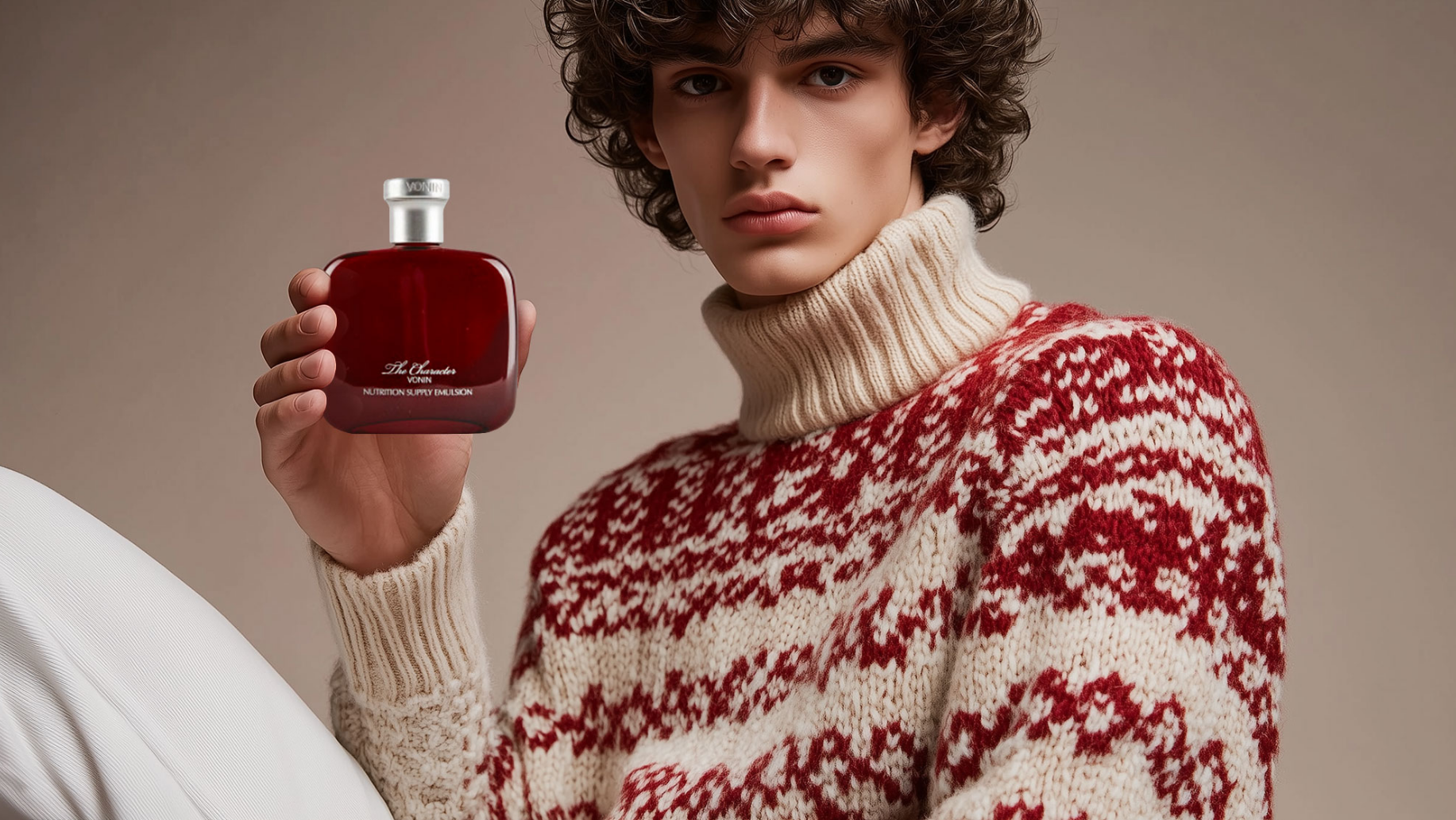 남성용 베이직 제품과 크리스마스 패턴의 포근한 니트 코디로 연말 시즌 선물을 겨냥한 연출